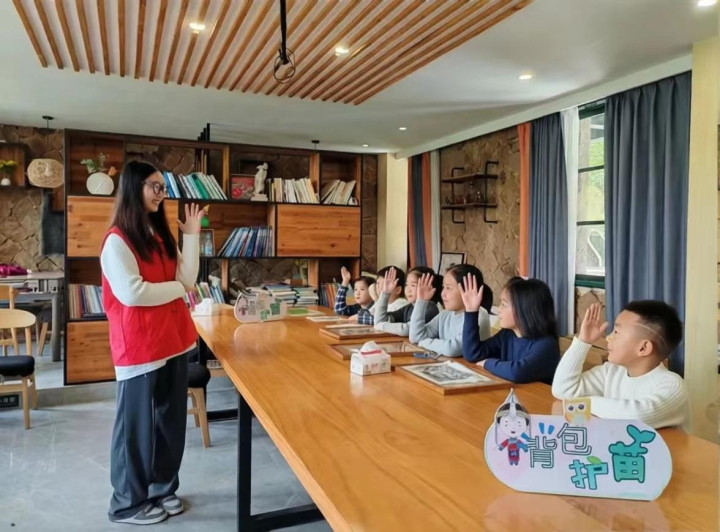 据介绍,“背包护苗”行动直指山区儿童“看管难、教育缺、兴趣寡”的痛点,吸纳了教师、大学生、驻村干部等组建志愿队伍,通过“学生点单、平台派单、志愿者接单”的服务模式,将非遗手工课程、作业辅导、心理关怀等内容纳入服务清单,以村为单位开设小微课,将服务送达孩子们身边。